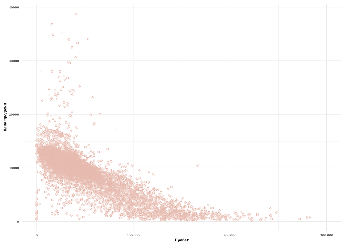 labs(x = 'Пробег', y = 'Цена продажи') +